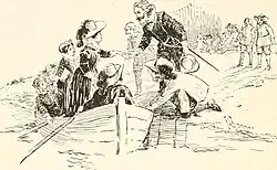 Mary Draper Ingles was an early settler of western Virginia. In the summer of 1755, she and her two young sons were among several captives taken by Shawnee warriors after the Draper's Meadow Massacre during the French and Indian War. They were taken to Lower Shawneetown at the junction of the Ohio and Scioto rivers. After two and a half months, Ingles escaped with another woman and trekked 500 to 600 miles. They averaged walking between eleven and twenty-one miles a day, and crossed at least 145 rivers and creeks and the Appalachian Mountains to return to her home in what is now Blacksburg, Virginia.[28] Forty-two days after her escape, she reached the home of her friend Adam Harman on December 1, 1755. Mary and her husband later established the Ingles Ferry across the New River, and the associated Ingles Ferry Hill Tavern and blacksmith shop.[29] She died there in 1815, at 83 years old.[28]