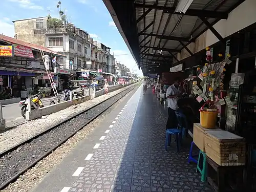 The station opened on 29 December 1904 during the reign of King Chulalongkorn, as part of the Pak Khlong San–Mahachai railway operated by the Tachin Railway Ltd.[4] On 24 November 1959, Prime Minister Sarit Thanarat suggested to the cabinet that the Pak Khlong San–Wongwian Yai section be closed in order to accommodate the increase in road traffic.[5] The station became the line's terminus following the closure of Pak Khlong San railway station, on 1 January 1961, with the Pak Khlong San–Wongwian Yai section converted into Charoen Rat Road.[6]