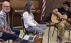 John Dillon and Vivian Nesbitt, hosts of the Art of the Song radio show, made their fourth visit to WoodyFest, this year interviewing Ellis Paul on Friday and Rebecca Loebe on Saturday. The interviews – which typically include the performance of one or two songs and a Q&A session with the audience – air at a later date.[77]