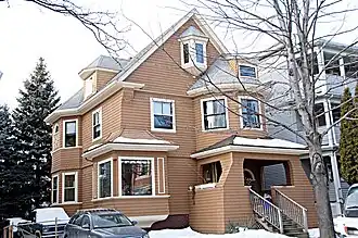 The Wright House is a historic house at 54 Vinal Avenue in Somerville, Massachusetts. The 2+1⁄2-story wood-frame house was built in 1892 for Walter H. Wright,[2] owner of a milk can manufacturer. It is predominantly Queen Anne style in its massing, with numerous projecting bays, including a turret-like section over the single-story front porch. Most of its architectural elements, however, are shingled, and there are bands of decorative cut shingles in various places.[3] Shepard S. Woodcock was the architect.[2]