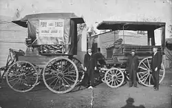 Building fires were a part of life in the village; once lit there was little that could be done to extinguish such a fire.[73][74][75] A fire preceded the spectacular explosion of the explosives magazine at the Great Cobar Mine, on 25 January 1908.[76][77][78] A fire at the post office, in 1901, was alleged to have been a deliberate attempt to cover embezzlement by the postmaster.[79] Some boys of the village were involved in dangerous behaviour[80][81] and vandalism.[82]