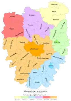 Wrocław Voivodeship (Polish: województwo wrocławskie) was a voivodeship (province) of Poland that existed from 1975 until 31 December 1998,[1] when it was absorbed into the larger Lower Silesian Voivodeship.