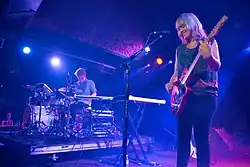 Wye Oak is an American indie rock duo from Baltimore composed of Andy Stack (drums, keyboards, backup vocals) and Jenn Wasner (vocals, guitars and bass).[1] Their sound has been described as "earnest folk-influenced indie rock with touches of noise and dream pop"[2] as well as indie folk.[3] Wasner sings lead vocals and plays electric or acoustic guitar, while Stack plays both drums and keyboards, playing the drums with his feet and right hand, and the bass line with his left hand.[4][5]