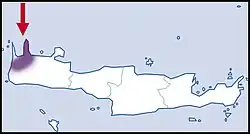 This species is endemic to Greece, where it is restricted to north-west Crete, from Platanos in the west to Kakopetros in the east, and the Rodopou peninsula in the north.[3][4]
