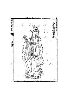 Xiao Baojuan (蕭寶卷) (483 – 31 December 501[2]), né Xiao Mingxian (蕭明賢), commonly known by his posthumously demoted title of Marquess of Donghun[3] (東昏侯), courtesy name Zhizang (智藏), was an emperor of the Southern Qi dynasty of China, during the Northern and Southern dynasties period. He was a violent ruler who executed high-level officials at his whim, and this drew several major rebellions, the last of which, by his general Xiao Yan, overthrew him and eventually his dynasty, with Xiao Yan establishing the Liang dynasty. He is known as the Marquess of Donghun because Xiao Yan demoted him to that title after he was killed in a siege of the capital Jiankang.