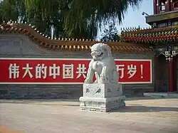 After the founding of the People's Republic of China, Zhongnanhai became the seat of the CCP Central Committee and the Central People's Government (abolished in 1954 and replaced by the State Council). After the outbreak of the Cultural Revolution, the Red Guards " destroyed the four olds " in Beijing in August 1966. The stone lions in front of Xinhua Gate were also regarded as the target of the Red Guards' "destroying the four olds". On August 26, 1966, Premier Zhou Enlai, based on the protection of cultural relics and historical sites, patiently persuaded the Red Guards and ordered the stone lions in front of Xinhua Gate to be moved away, thus protecting them. Later, the pair of stone lions returned to their original location.[3]
