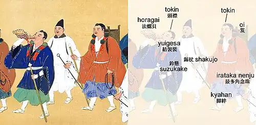 The Yamabushi usually wear and bring the following clothes and items with them:[5][6][7]