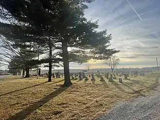 Yellow Creek Mennonite Church cemetery situated at the southwest corner of county roads 38 and 11.