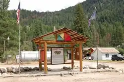 Yellow Pine is a 247-acre (1.00 km2) "inholder" community in eastern Valley County, located on the East Fork of the South Fork of the Salmon River, approximately half a mile upstream from its confluence with Johnson Creek. It is bounded on the north by the Payette National Forest and on the south by the Boise National Forest. Located at 4,802 feet (1,464 m), Yellow Pine has historically served as the trade center for the larger Yellow Pine basin mining area, including the Stibnite Mining District. Many of the early miner-settlers came from Warren, Idaho.