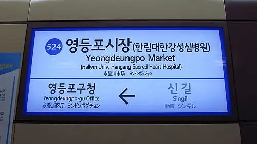 1. ^ a b "영등포시장역" (in Korean). Doopedia. Retrieved 2018-05-13.