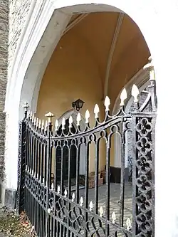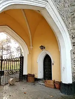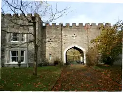 Today there survives only one of the large imposing castellated gate house lodges, with two square towers either side of the tall gothic arched entrance way, to which was later added a farmhouse with crenellated gable-end to match with bay-window. It is now a grade II listed building known as Ivy Lodge.[10]