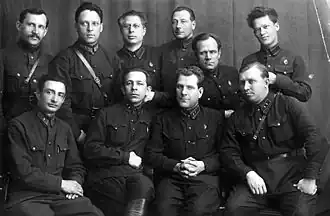 Yevgeny Tuchkov (first row, second from right) among the staff of the OGPU plenipotentiary office in the Urals.