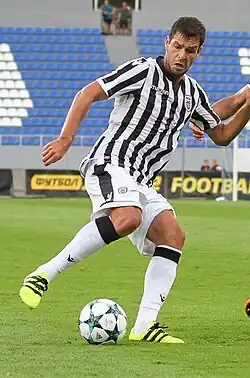 On 5 March 2017, he scored his first Superleague game, in the derby against champions Olympiacos, helping his club to obtain a 2–0 home win. On 27 April 2017, he scored the third goal in Greek Cup semifinals against Panathinaikos in a 4–0 helping his club to be promoted to the final against rivals AEK Athens.[6] On 8 February 2018, he opened the score in a comfortable 3–1 away Greek Cup win against Atromitos helping his club to be promoted to semi-finals. It was his fifth goal for the 2017–18 Greek Football Cup.[7] On 14 April 2018, he opened the score in a comfortable 3–1 home win against Panionios at Toumba Stadium (behind closed doors).[8] On 29 April 2018, he scored in a 3–0 away win against struggling giants Panathinaikos, essentially occupied the second place in the 2017–18 season that leads in the preliminary round of UEFA Champions League.[9]