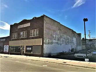 It is a two-story brick Early Commercial-style building on a concrete foundation.[2]