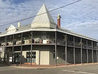 In the 1960s, the hotel was owned by the Swan Brewery and its verandah was replaced by a cantilever canopy and the candle-snuffer roofed turret removed.[20]