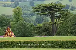 The park is situated in the grounds of Bretton Hall, an 18th-century estate which was a family home until the mid-20th century when it became Bretton Hall College.[6] Follies, landscape features and architectural structures from the 18th century can be seen around the park including the deer park and deer shelter (recently converted by American sculptor James Turrell into an installation), an ice house, and a camellia house. Artists working at YSP, such as Andy Goldsworthy in 2007, take their inspiration from its architectural, historical or natural environment.[5]