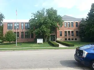The Yorkville School was the first large school building in the area and held classes from first grade through high school. Grade school students were largely drawn from the two communities, but high school students would attend from as far as 20 miles (32 km) away. Despite the name, the school was built in what was then still called Bristol. Yorkville residents filed a lawsuit to stop construction, but the district was able to construct the building before the case went to court. It replaced an 1830s one-room schoolhouse on the south side of the river and an 1850s four-room school building on the north side. Bristol was later merged into Yorkville.[2]