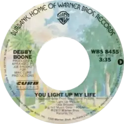 In 1977, Debby Boone, Pat Boone's daughter, recorded the song under the guidance of Curb Records executive Mike Curb[7] and songwriter Joseph Brooks.[5] Boone recorded her vocals over a pre-existing instrumental track that Brooks already had developed for the film's soundtrack.[7] The song was released as both a Warner-Curb Records single and as the title track to her first solo album, You Light Up My Life, which she released on Warner Bros. Records, Curb Records' parent label.