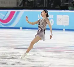 Two weeks later, at the 2020 Youth Olympics in Lausanne, she placed first in the short program, a little less than 2 points ahead of Ksenia Sinitsyna of Russia. Because of the different competition requirements at the junior level, she did not attempt a triple Axel in the short program. She then won the free skate by over 12 points and won the title overall, landing eight clean triples in the free skate for the first time, including a triple Axel and two triple Lutz combinations.[24] By doing so, she ended Russia's winning streak in girls' singles at the Winter Youth Olympics, which included previous champions Elizaveta Tuktamysheva (2012) and Polina Tsurskaya (2016).