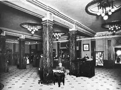 A travel guidebook described Young's in 1895: "The main entrance to this hotel is on Court Avenue, and the hotel extends to Court Square and Court Street. It is one of the largest and best of the hotels on the European plan. One of the features of this hotel is the ladies' dining-room, the entrance to which is on the Court Street side. This is a handsomely decorated room 100 feet long and 31 feet wide. It connects with other large dining-rooms, and a cafe for gentlemen on the ground floor. This hotel is a favorite place with New Yorkers. ... Recognized as among the best [hotel restaurants in the city] are those connected with Young's Hotel, the Parker House, and the Adams House. That of Young's Hotel is very extensive, occupying a large part of the ground floor of that establishment. It has dining-rooms for ladies and gentlemen, lunch rooms, and convenient lunch and oyster counters."[10]
