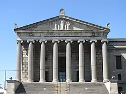 Downtown Youngstown has seen modest levels of new construction. In the 2000s, additions included the Nathaniel R. Jones Federal Building and U.S. Courthouse in 2002, named for Youngstown native Nathaniel R. Jones and designed by Robert A. M. Stern Architects,[51] the Mahoning County Children's Services Center and George Voinovich Government Center in 2004, and both the Covelli Centre and Ohio Seventh District Court of Appeals in 2006. The Covelli Centre was funded primarily through a $26 million federal grant secured in 2000 by then-Congressman James Traficant and is located on the site of a former steel mill downtown.[52] The arena's main tenants are the Youngstown Phantoms junior hockey team.