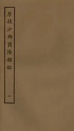 Cover of a printed edition of Miscellaneous Morsels from Youyang from Sibu Congkan (volume two)