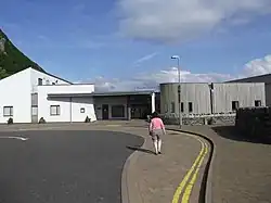 The facility was commissioned to replace the aging Ysbyty Bron y Garth in Penrhyndeudraeth.[1] It was designed by IBI Group and built on an elevated site which had previously been occupied by a rail interchange and ironstone mine.[2] It cost £19 million to construct and was officially opened by Edwina Hart, Minister for Health and Social Services, in July 2009.[3][4]