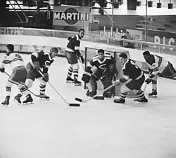 The Yugoslav national ice hockey team was the national men's ice hockey in the former republic of Yugoslavia. They competed in five Olympic Games competitions. This article discusses the team that represented the Socialist Federal Republic of Yugoslavia and its predecessors, but not the Federal Republic of Yugoslavia. For the FRY, please see the Serbia and Montenegro men's national ice hockey team. The team was largely composed of players from Slovenia: throughout its existence 91% of all players on the national team were Slovene, and the entire roster for the team at the 1984 Winter Olympics, held in Sarajevo were from Slovenia.[1]