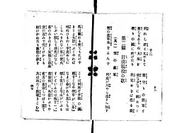 During the Battle of Weihaiwei, the Imperial Japanese Army experienced heavy snow and low temperature, while being under-equipped with water, food and fuel.[3] Nagai reflected this in his song about the hardship the Japanese soldiers experienced and their discontentment about the war.[4] The song was titled "The Snow March." The song became popular following its publication, is described by scholars to have an upbeat melody.[5][6][7] It was reported to be a favorite song of field marshall Ōyama Iwao.[8] It was also taught and sung in Japanese schools during the late Meiji period.[9]
