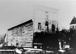 The building was constructed during the Klondike Gold Rush[3] in 1898 by J.E. Binet, who named it Binet Block. A local entrepreneur, he and his brother J.O. Binet also operated Malden House, the Marconi Hotel, and Binet Brothers Saloon,[4] and the Binet Bros. Hotel and General Merchants in Mayo. He and his workers used available materials, rushing to complete it by November.[5] The narrow building had large street-level windows flanking the main entrance. Only the facade was made of milled lumber, as it was in short supply; the remainder of the building was made of "rough logs chinked with mud".[6]
