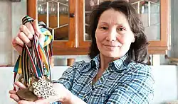 Yuliya Mikhailovna Shamshurina (Russian: Ю́лия Михаловна Шамшу́рина, née Stepanova; born 16 July 1962) is a Soviet cross-country skier who competed from 1982 to 1989, training at VSS Urozhay in Ustinov. She won a silver medal in the 4x5 km at the 1989 FIS Nordic World Ski Championships in Lahti and had her best individual finish of fourth in the 10 km event at those same championships.