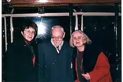 ![]() Shevelov with Tamara Hundorova and Myrolsava Znayenko in New York, 1998 | |