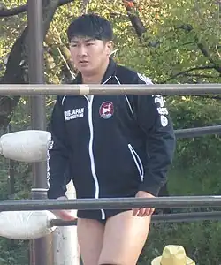 With a background in sumo,[2] Aoki joined the Big Japan Pro Wrestling (BJW) dojo in April 2016 after being scouted by Yuji Okabayashi whilst in high school.[2] He wrestled an exhibition match in November 2016 before making his official debut on January 17, 2017, in a losing effort against his mentor Okabayashi.[3][4] In May, he joined BJW's newly established junior heavyweight division, Strong J, and entered the tournament to crown the inaugural BJW Junior Heavyweight Championship.[5] On June 4, Aoki scored his first singles win in a shocking upset against veteran Shinobu.[6] Despite this, he would finish the tournament bottom of the standings having lost his four other matches. Having defeated the eventual champion Shinobu, he unsuccessfully challenged him to a title match on November 1.[7] In 2017, Aoki also made several appearances for major promotion All Japan Pro Wrestling (AJPW), including their 45th anniversary show.[8] In March 2018, Aoki entered his first Ikkitousen Strong Climb where he managed to pick up win over Yasufumi Nakanoue.[9] In August, he also entered his first Saikyo Tag League with Kazuki Hashimoto as part of the Strong Style Block; they picked up two wins and did not progress to the knockout stage. On October 8, after Hashimoto had defended his BJW Junior Heavyweight Championship against Tatsuhiko Yoshino, Aoki challenged him to a match at Ryōgokutan, BJW's annual Ryōgoku Kokugikan show, and backed up his claim when Aoki pinned Hashimoto in a six man tag on October 25.[10] At Ryōgokutan 2018, on November 11, Aoki lost to Hashimoto.[11] In Pro Wrestling Zero1 (Zero1), he participated in the 2019 Fire Festival and scored eight points in Block A with a win over Asuka and a draw against Super Tiger.[12] On September 15, Aoki defeated former WWE star Tajiri to win the BJW Junior Heavyweight Championship, the first championship of his career.[13] He made his first successful title defence at Ryōgokutan 2019, on November 4, defeating Kota Sekifuda, Tajiri and Tatsuhiko Yoshino in a four way match.[14] Aoki made three further successful title defences before entering the 2020 Ikkitousen Strong Climb. After only one win in three matches, Aoki's tournament was already over by March 23, however, the remaining tournament matches would be cancelled due to the COVID-19 pandemic and Aoki would finish joint last with Yasufumi Nakanoue and Takuya Nomura.[15] On October 21, Aoki lost the BJW Junior Heavyweight Championship to Tatsuhiko Yoshino.[16] After the match, Aoki declared his intentions to move up to the heavyweight division, Strong BJ.[1]