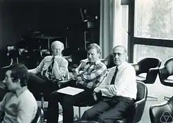 Gérard Debreu, Yves Balasko and Edmond Malinvaud at Oberwolfach, circa 1977