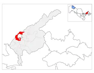 Zangiota is a district of Tashkent Region in Uzbekistan. The capital lies at the town Eshonguzar.[1] It has an area of 210 km2 (81 sq mi)[2] and it had 195,400 inhabitants in 2021.[3] Between 2010 and 2017, the territory of Tashkent District was part of Zangiota District.[4][5]