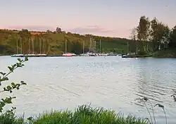 The Zarzeczewo Marina - a sailing port in Włocławek on the right bank of the Vistula River (Włocławek Reservoir; km 672.50),[1] located in the Zawiśle district, in the Zarzeczewo neighbourhood, near the village of Zarzeczewo. The Chełmiczka River and the Święty Strumień stream escape into a small bay where the marina is located.[2] Before the construction of the dam in Włocławek, a kilometre long clump of bushes stretched on the Vistula River at the height of Zarzeczewo.[3] The bay in its present shape was created by the construction of the dam in Włocławek and the creation of the largest artificial lake in Poland.
