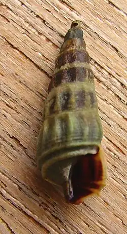 | Apertural view of a beachworn shell of Zeacumantus lutulentus. | |