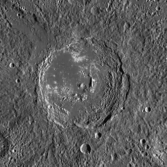 Hollows are present within Zeami. Small irregular depressions near the central peak complex are evidence of explosive volcanism on the floor of the crater.[2]