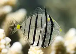 - ^ Christopher Scharpf & Kenneth J. Lazara, eds. (12 January 2021). "Order ACANTHURIFORMES (part 2): Families EPHIPPIDAE, LEIOGNATHIDAE, SCATOPHAGIDAE, ANTIGONIIDAE, SIGANIDAE, CAPROIDAE, LUVARIDAE, ZANCLIDAE and ACANTHURIDAE". The ETYFish Project Fish Name Etymology Database. Christopher Scharpf and Kenneth J. Lazara. Retrieved 10 October 2023.