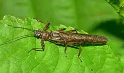 Zelandoperla fenestrata is a widespread endemic New Zealand ‘long-tailed’ stonefly that is often abundant in high-gradient stony streams, from near sea-level up to alpine elevations.[1] The species name 'fenestrata' refers to the window-like rectangular patterning visible on the wings of non-melanic adult specimens.