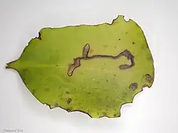 Initially the larvae of this species are leaf miners but as they mature they mine the stems of their host plants, finally moving on to consuming the leaves and flowers.[7] They prepare for pupation by forming a white silk cocoon that is normally attached to the stem of their host plant.[7] This stage can last as little as ten days.[7] Adults emerge between the months of August and February.[7]