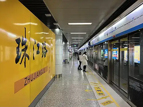 Zhujianglu station (Chinese: 珠江路站; pinyin: Zhūjiānglù Zhàn; lit. 'Pearl River Road station') is a station on Line 1 of the Nanjing Metro. It started operations on 3 September 2005[1] as part of the line's Phase I from Maigaoqiao to Andemen.[a]