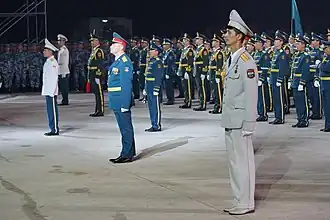 The Zhurihe Training Base (Chinese: 朱日和训练基地), also called the Zhurihe Combined Tactics Training Base,[1] is a People's Liberation Army (PLA) base in Inner Mongolia, China,[2] founded in 1957.[3] The largest military base in China, Zhurihe covers 1,066 square kilometres (412 sq mi), has its own hospital, and for over 60 years[4] has hosted multiple mock training areas for conducting urban war games.[5] General Secretary and Chairman Xi Jinping commemorated the 90th anniversary of the PLA with a military parade at Zhurihe.[6] The PLA has called Zhurihe their "most modernized training base" and say it is the largest in Asia.[7] Comparisons have been made between Zhurihe and Fort Irwin in California, United States.[5]