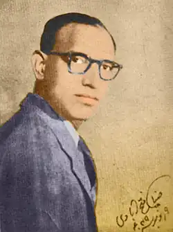 Zia Fatehabadi's father was an exponent of Indian Classical vocal and instrumental music, who often invited musicians and singers to his residence, was himself fond of singing and playing musical instruments, and a good player of chess.[4] It was one such evening in Jaipur when the young school-going Zia Fatehabadi was not given by the invited singer a copy of Iqbal's ghazal that had been liked and wanted by him; this particular incident probably exasperated Zia's urge to write and made him a poet.[5]