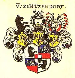 The family was firstly mentioned in 1114 in a document written by Hermann von Vohburg, Bishop of Augsburg. At first, their estates were all near St. Poelten which is roughly between Vienna and Salzburg. During the reformation, many of the Zinzendorfs became Lutherans and, because of their religious belief, they were forced to leave Austria. Nevertheless they made sure that at least one member stayed Catholic - to look after their vast estates back in Austria.[1] Apart from their possessions in Austria, they also reigned over the Lordship of Pottendorf in Baden, which was incorporated into their name as Zinzendorf und Pottendorf.