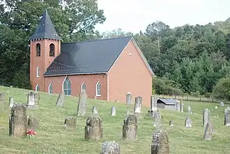 Zion Evangelical Lutheran Church Cemetery is a historic Evangelical Lutheran cemetery and national historic district located near Speedwell, Wythe County, Virginia. The cemetery includes approximately 250–300 total gravestones. Forty two of the stones have dates ranging from the 1790s to 1840, but all were carved between about 1835 to 1840. It is likely that a skilled carver moved to the area in the mid-1830s and provided stones for many graves, which formerly had been marked with improvised stone or wooden markers, then completed his work by 1840. The thick sandstone markers are Germanic stones with surviving inscriptions.[3]