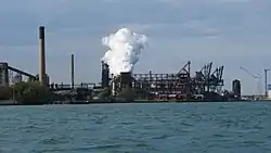 Zug Island is a heavily industrialized island within the city of River Rouge at the southern city limits of Detroit in the U.S. state of Michigan. It is located where the mouth of the River Rouge spills into the Detroit River. Zug Island is not a natural island in the river; it was formed when a shipping canal was dug along the southwestern side of the island, allowing ships to bypass several hundred yards of twisting waterway near the mouth of the natural course of the lowest portions of the River Rouge.[1]